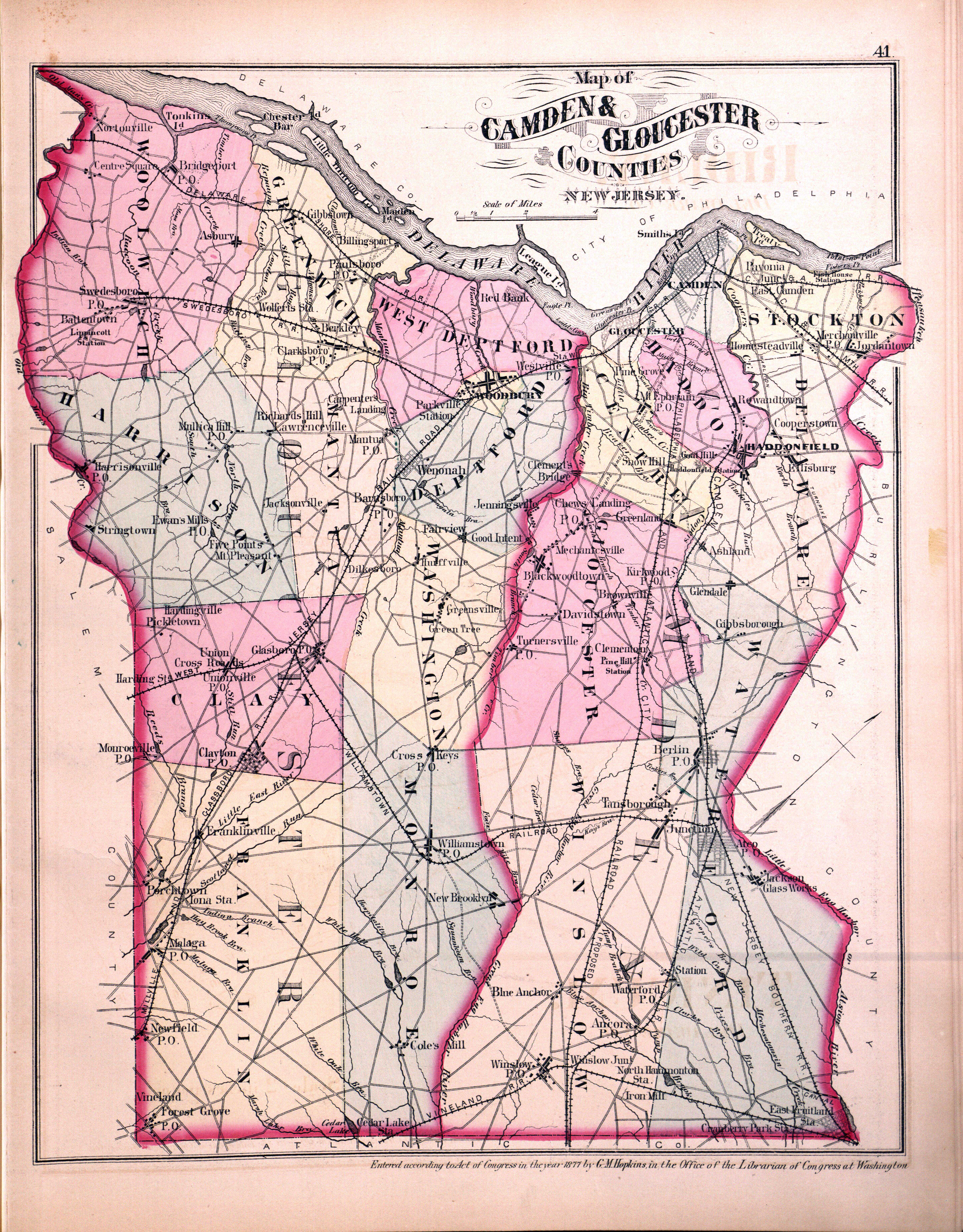 NJ maps from the Atlas of Philadelphia and environs: G. M. Hopkins 1877 - Camden and Gloucester Counties